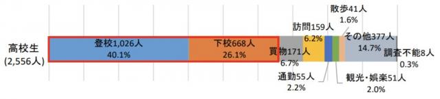 高校生の通行目的別自転車乗用中死者・重傷者数【令和2年~6年合計】参考・出典:警察庁Webサイト