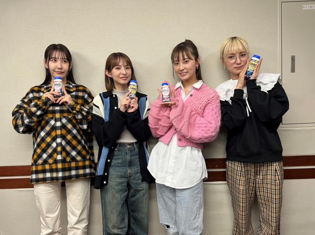 「ザバス MILK PROTEIN のむヨーグルト」を手にしたSCANDALメンバーをパチリ